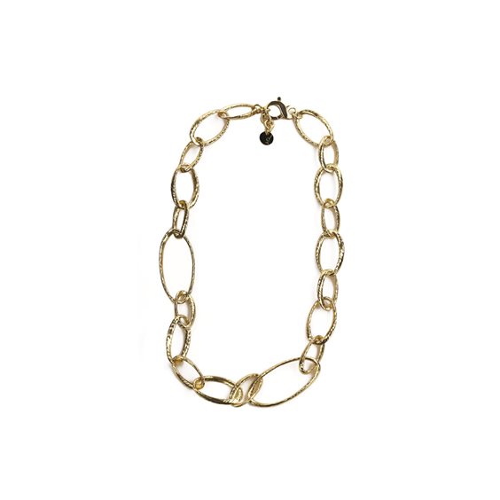 Collana con anelli ovali di varie dimensioni in argento 925‰ placcato oro giallo 23kt. argento 925/000 placcatura in oro giallo 23 carati rivestimento con speciale trattamento che protegge dalla naturale ossidazione del metallo orgogliosamente fatto a mano in Italia placcature rigorosamente senza alcun rilascio di nichel e cadmio comfort fit