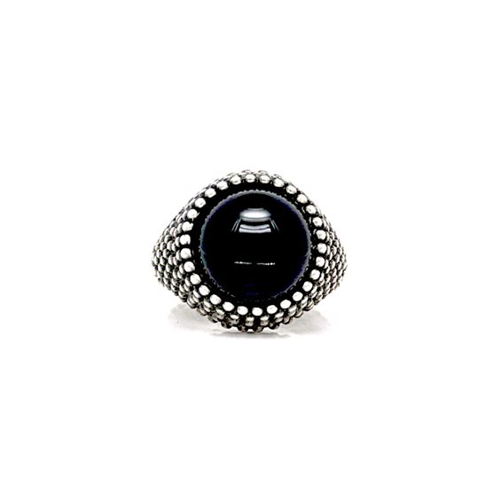 Questo anello in argento 925 invecchiato è l’essenza stessa del design contemporaneo con un’anima antica: la patina del tempo dona profondità e carattere, trasformando ogni curva in una storia da indossare. Il design rotondo, morbido e sinuoso, avvolge il dito come un abbraccio silenzioso. Al centro, un’onice nera di taglio tondo perfetto brilla con un mistero profondo, simbolo di eleganza sobria e forza interiore. L’oro nero della pietra si fonde armoniosamente con il grigio scuro dell’argento invecchiato, creando un contrasto audace e raffinato. Caratteristica distintiva? È regolabile. Adattabile a ogni dito, a ogni momento della tua vita, senza compromessi su comfort o stile. Perfetto per essere indossato ogni giorno o riservato ai momenti speciali.