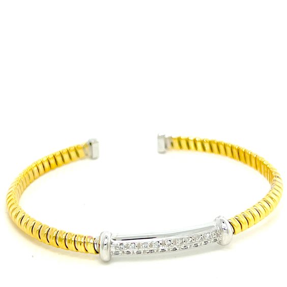 Bracciale in oro giallo 18 carati Tubogas con anima in acciaio e barretta centrale impreziosita da brillanti: un gioiello iconico che unisce l’eleganza senza tempo dell’oro giallo alla resistenza e alla flessibilità della tecnica Tubogas. Questo bracciale, realizzato con un’anima in acciaio per garantire durata e comfort, si distingue per la sua barretta centrale tempestata di brillanti che catturano la luce con ogni movimento, rendendolo perfetto per chi cerca un accessorio raffinato e di grande impatto. Ideale come regalo prezioso o come firma di stile personale, il bracciale Tubogas con brillanti è un must-have per chi desidera unire lusso, artigianalità italiana e design contemporaneo.