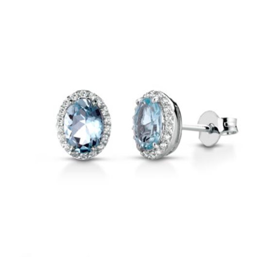 Orecchìni in oro bianco 750 con acqua marina e diamanti.