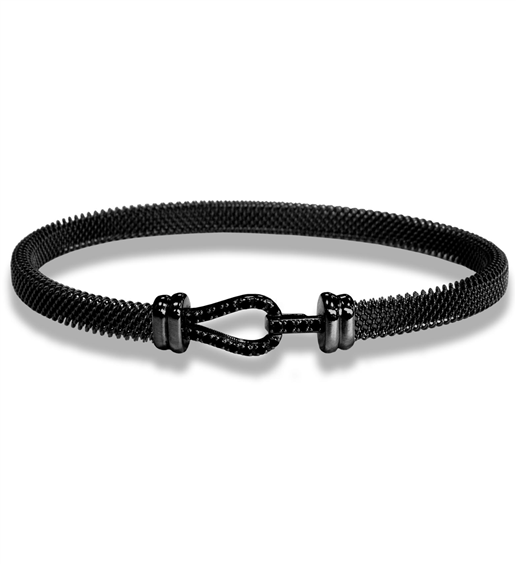 BRACCIALE IN ACCIAIO NERO CON CHIUSURA IN ORO BRUNITO 18KT E DIAMANTI NERI CM.19