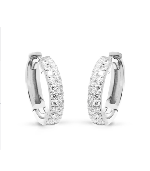 ORECCHINI A CERCHIO SCATTINI MINI IN ORO BIANCO 18KT CON DIAMANTI NATURALI F COLOR PUREZZA VS CT 0,26CERCHIETTI DI BRILLANTINI E ORO BIANCO