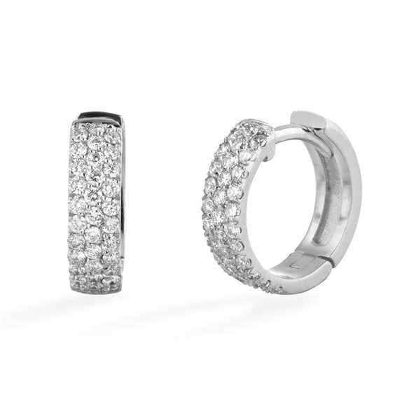CERCHI A SCATTINO MINI IN ORO BIANCO 18KT 3 FILA DI BRILLANTI QUALITA' VS COLORE F TOT CT O,40