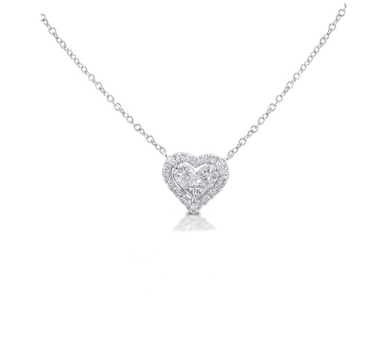 COLLANA IN ORO BIANCO CON CUORE MULTIPIETRA DI FORMA E CORNICE DI BRILLANTI