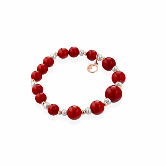 Bracciale elastico in pasta di corallo, argento rosa e perle d'acqua dolce Bracciale in pasta di corallo per donare colore ed eleganza al tuo outfit