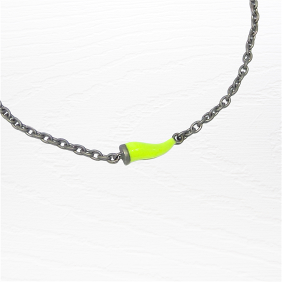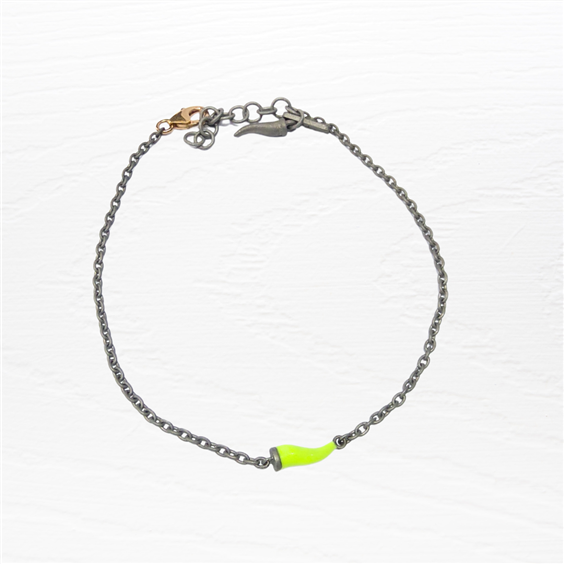Bracciale in Titanio con catena groumette e corno colore giallo fluo smaltato con moschettone in oro rosa 9ct.