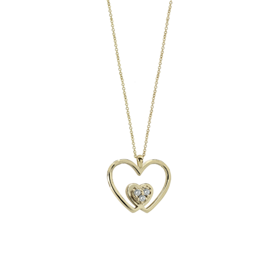 Collana in oro 18ct. con doppio cuore e diamanti.