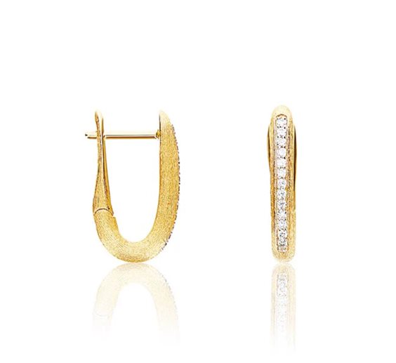 Piccolo capolavoro di arte orafa, questi orecchini in oro 18kt e brillanti sublimano magistralmente bellezza e gusto contemporaneo, diventando poesie di luce e di eleganza. Ref. OS1-602 DIAMANTI: – Peso (totale): 0.12 CT – Purezza: VS – Colore: G – Taglio: brillante rotondo Scegliamo le nostre pietre preziose una ad una, e realizziamo a mano ogni nostro pezzo: per questa ragione, le caratteristiche sopra elencate potrebbero variare leggermente.