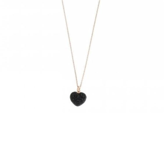 Collana con cuore bombato grande. Catenina in argento laminato in oro rosa. Cuore in argento ricoperto di polvere di silicio color bronzo.