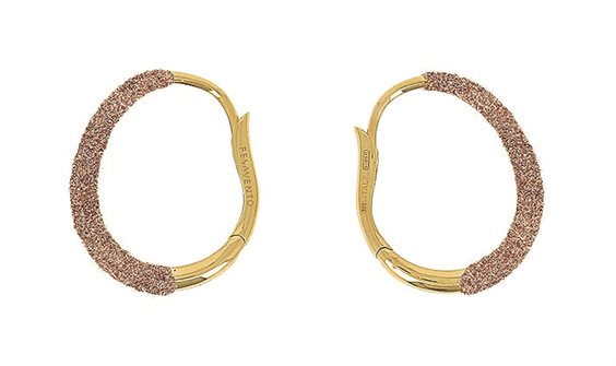 Orecchini in argento 925 placcati oro giallo Eleganza raffinata e dettaglio artigianale si fondono in questi orecchini, realizzati in argento 925 e impreziositi da una placcatura in oro giallo che ne esalta la lucentezza. La finitura lucidata a specchio regala un effetto cangiante e luminoso, mentre il tratto in polvere marrone di Pesavento aggiunge un tocco pittorico e distintivo, ispirato alla maestria del designer. Un gioiello contemporaneo, sofisticato e unico, pensato per chi cerca stile senza tempo con un’allure moderna e ricercata.