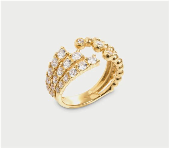 ANELLO IN ARGENTO DORATO 925% CON TRE FILE DI ZIRCONI ASIMMETRICHE