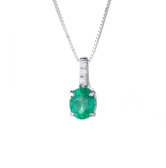 Collana in oro bianco con pendente con Smeraldo 0,3 e diamanti G VS 0,015