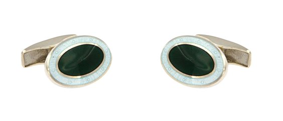 Gemelli a scatto in argento 925% artigianali forma ovale con smalti radianti interno verde esterno bianco